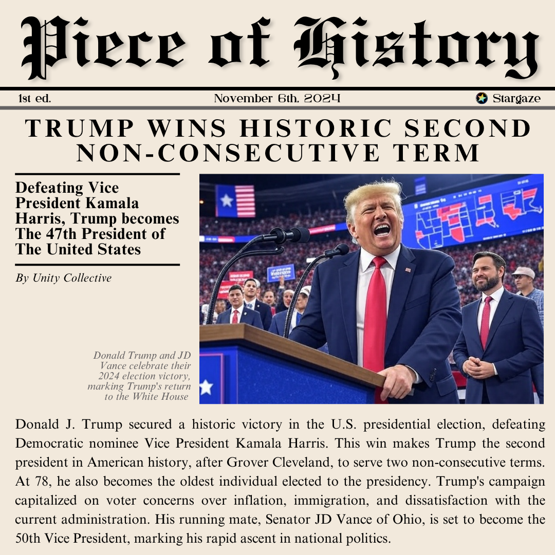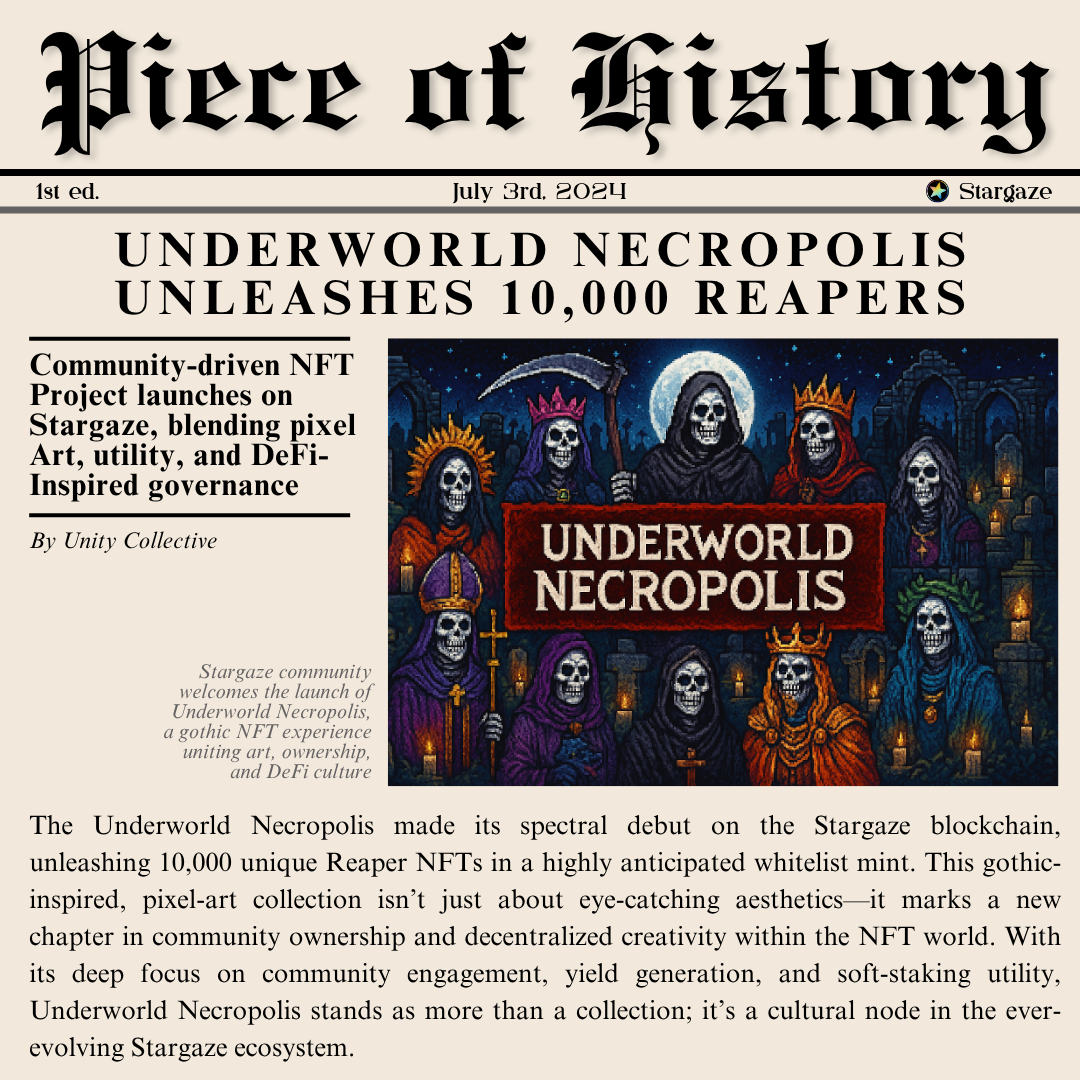 Piece of History (POH) is Unity Collective’s ongoing series of NFT collections capturing key real-world events from every day of the year. Each piece is styled as a newspaper front page—melding impactful visuals with condensed reporting—to immortalize the stories that shape our world. With POH24, the second edition of the project, we continue our mission to archive global history through the lens of digital art and blockchain technology. Each NFT blends storytelling and design, offering collectors a unique chance to own a moment of truth from 2024. This edition introduces new artistic directions and deeper community features, making it a bold evolution from its predecessor. POH24 builds on the foundations of 2023 while introducing innovative traits and deeper collector engagement.