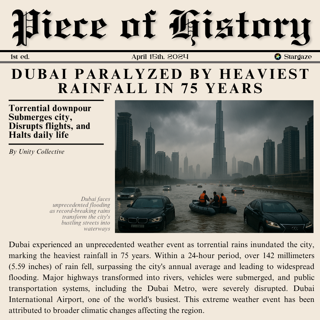 The creation of the “Piece of History” collection begins with careful research and curation. For each day of the year, top global news stories are selected, focusing on a wide range of categories—from political shifts to cultural breakthroughs, natural disasters, and sports highlights. Headlines, subheadlines, and concise reports are crafted by our team to capture the essence of these events, presenting a snapshot of how the world evolved over the course of the year. For the visual component, the collection draws on AI-Generated Images: These are custom-created to match the tone and content of the news, providing each NFT with a distinctive and original visual representation.